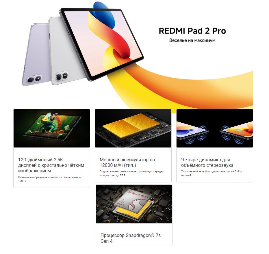 Характеристики Планшет Redmi Pad 2 Pro 8/256GB Gray/Серый